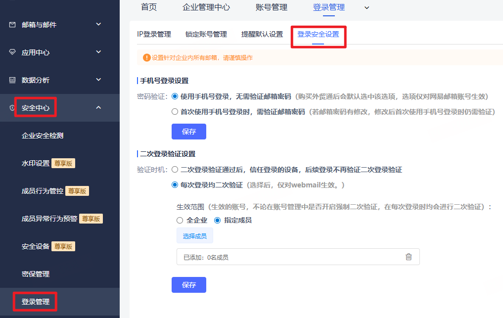 管理员可通过此设置,达到只允许员工在特定IP范围内才可以访问邮箱的目的,更好的保护企业信息安全。