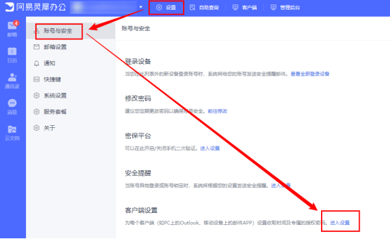 2、点击,设置--账号与安全--客户端设置--进入设置