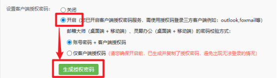 3、开启imap、pop、smtp权限,并开启、生成客户端授权码