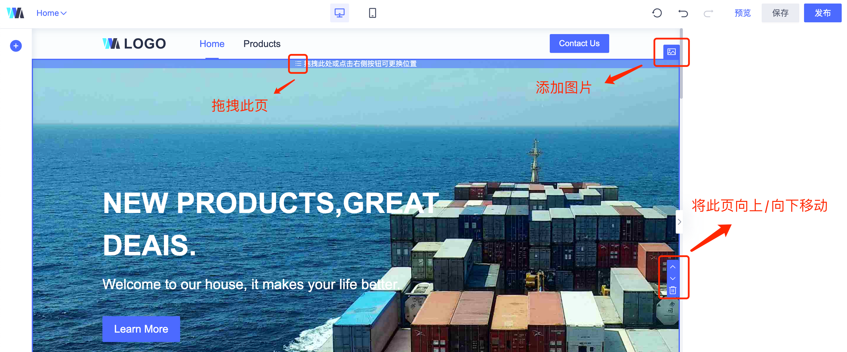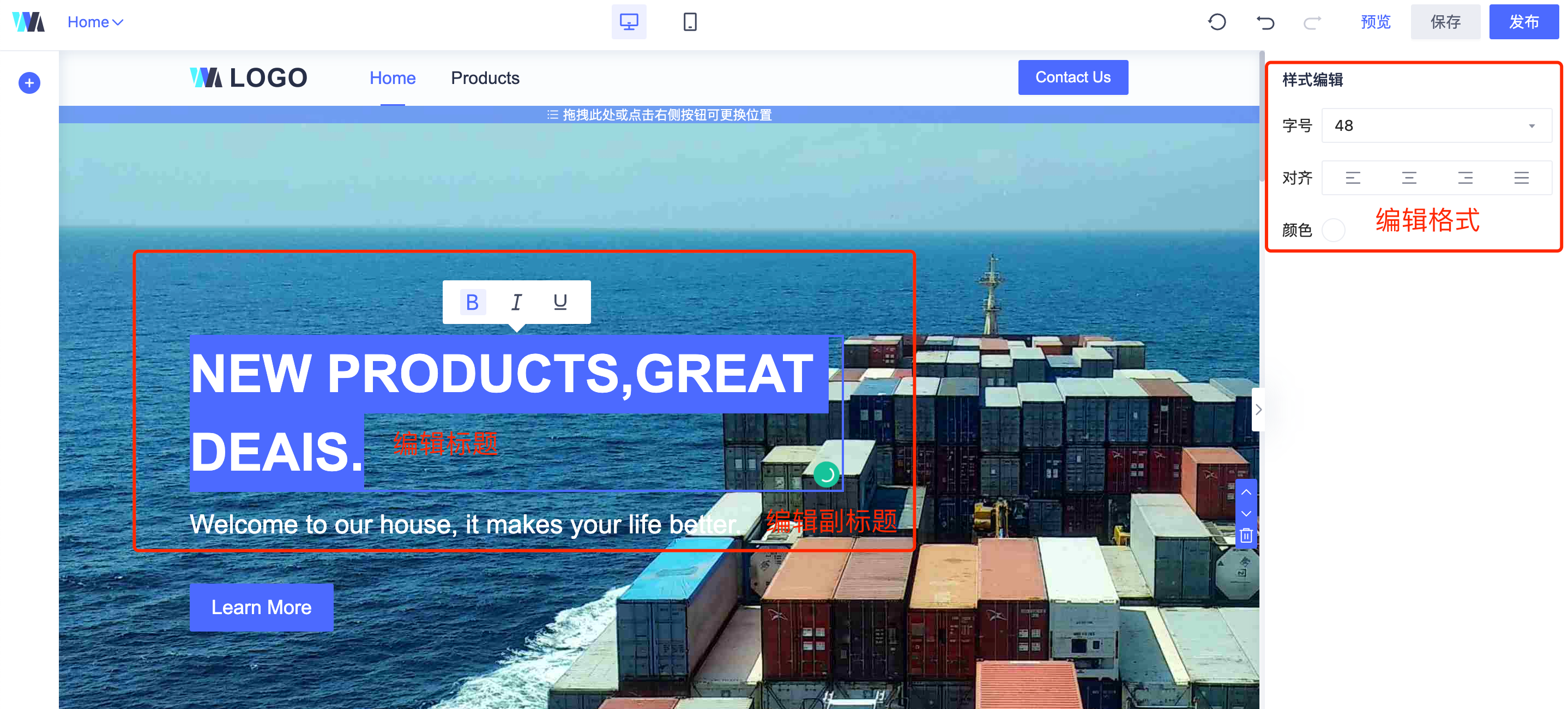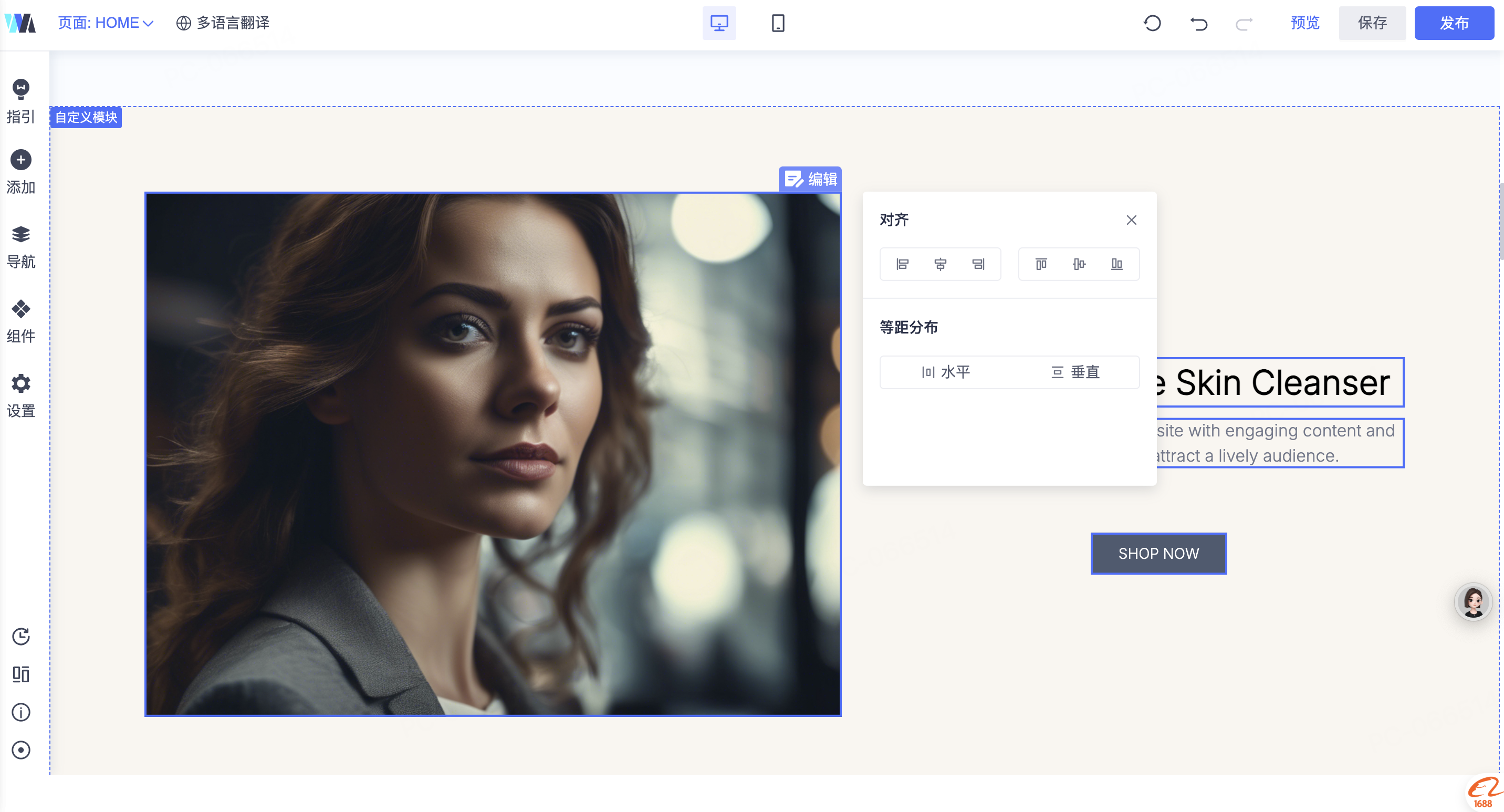 3、自由编辑修改:搭配建站编辑器,根据业务需求自由调整页面布局