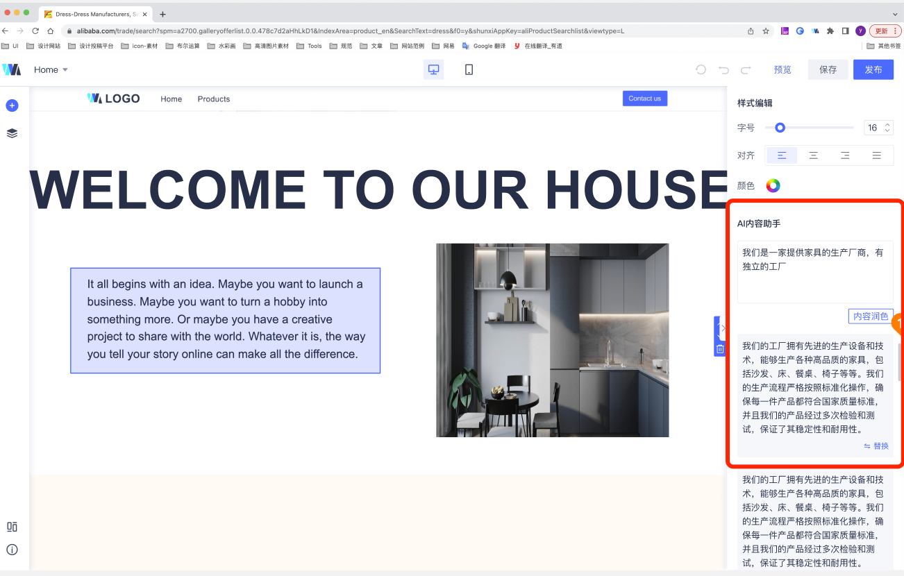 1、AI智能建站:使用AI能力快速生成符合业务需求的网站,提高建站效率、降低人力成本