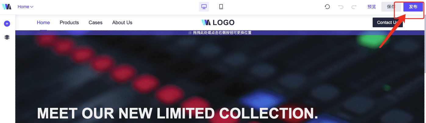 点击右上角“预览“可查看发布后的样式,点击“发布”即可生成站点。