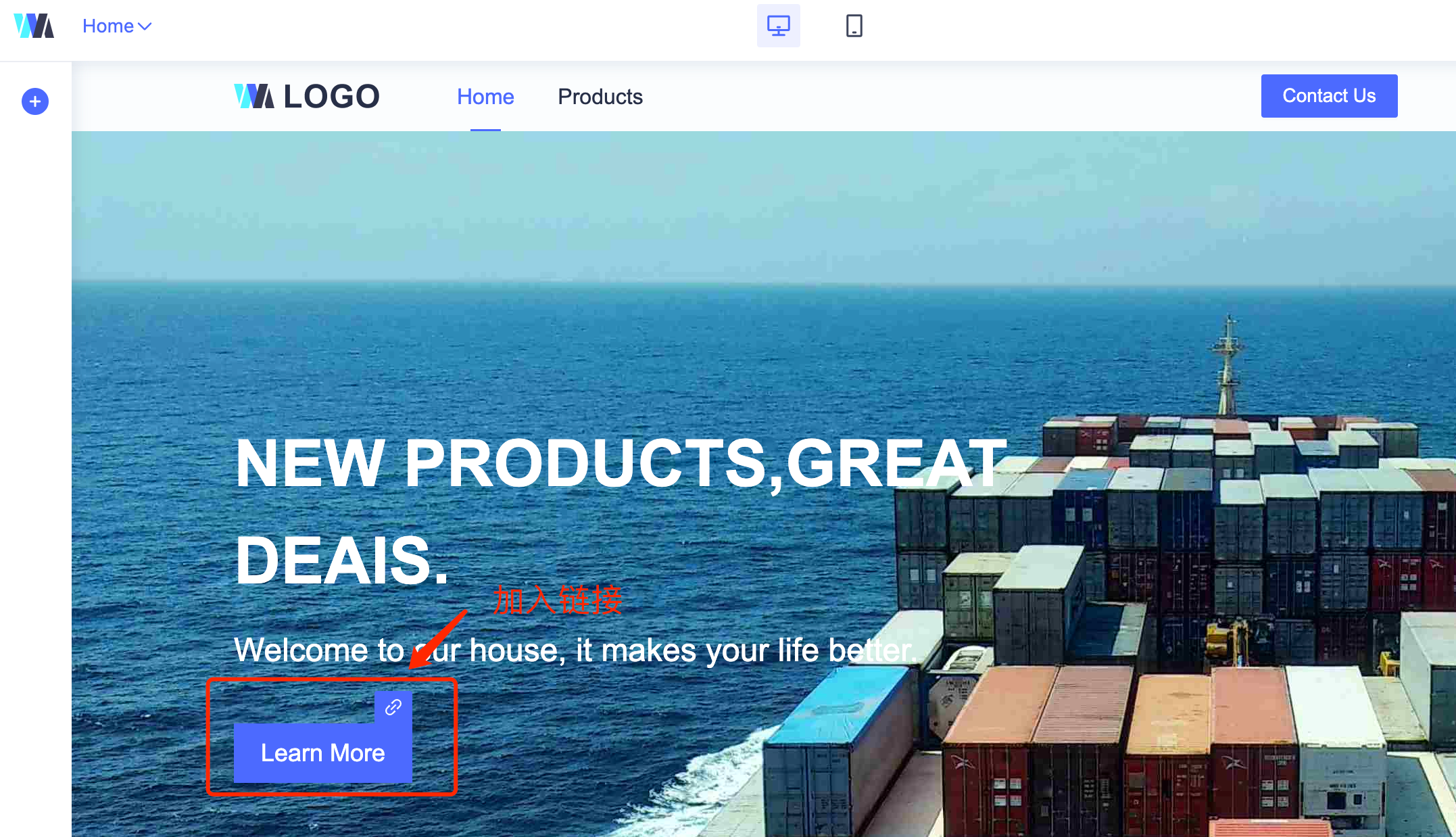 单击「Learn More」后点击🔗即可加入跳转链接,让客户能够快速访达产品或企业的详细介绍。