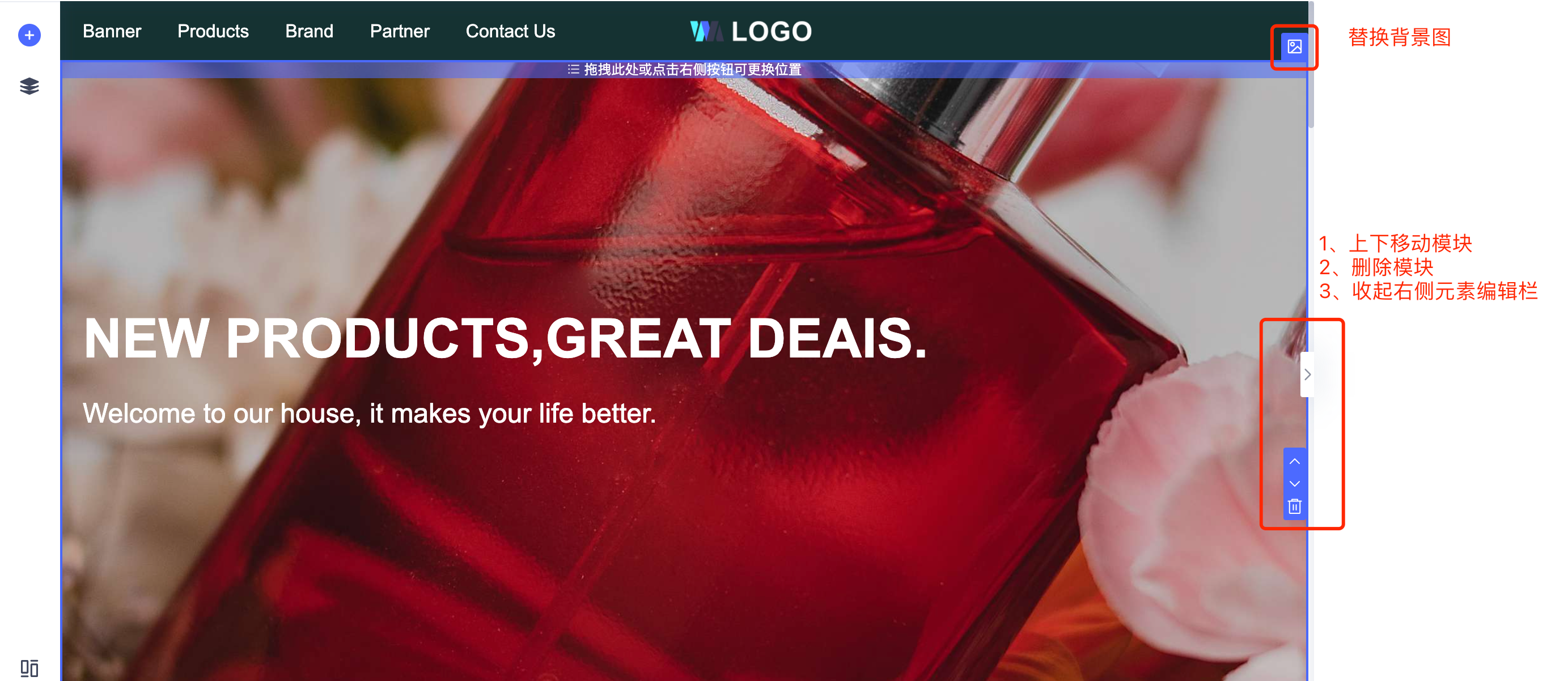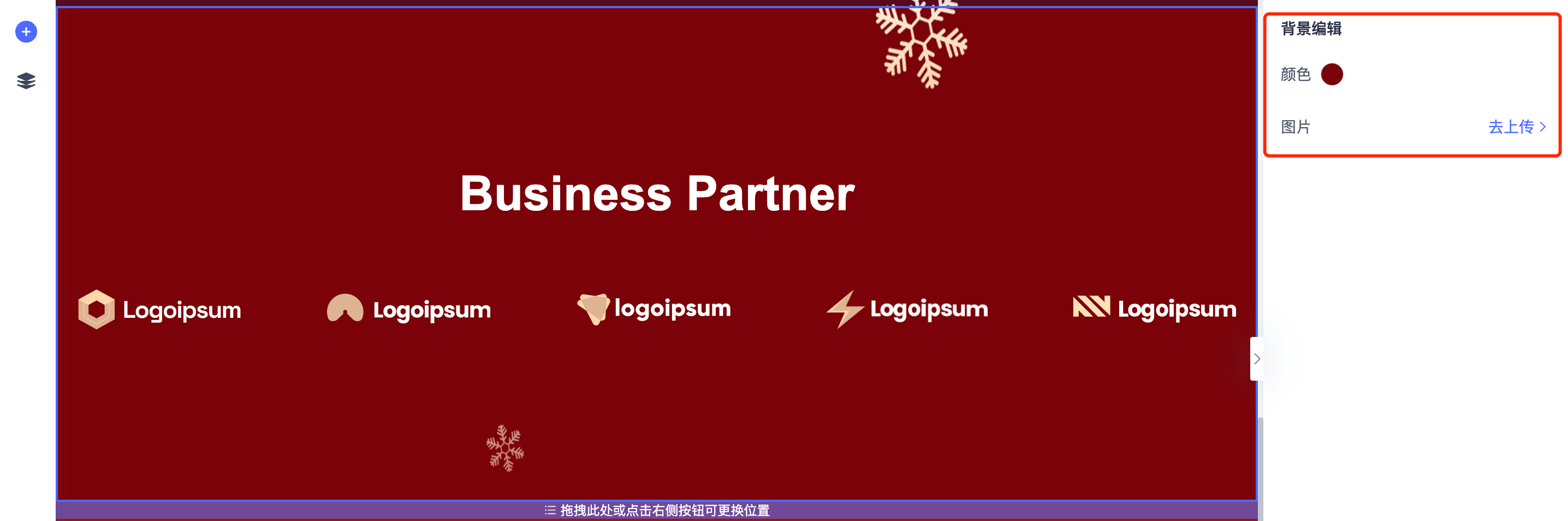 单击【Partner】背景模块时,在右侧元素编辑栏可以进行背景编辑: