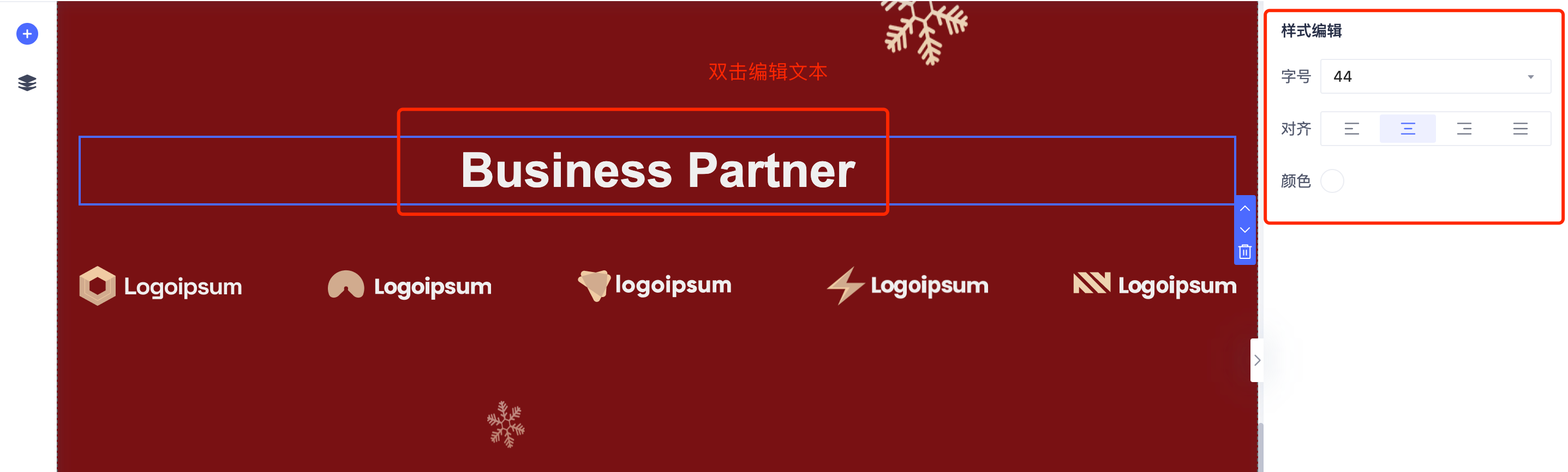 - 单击文本时,在右侧元素编辑栏可以进行样式编辑: