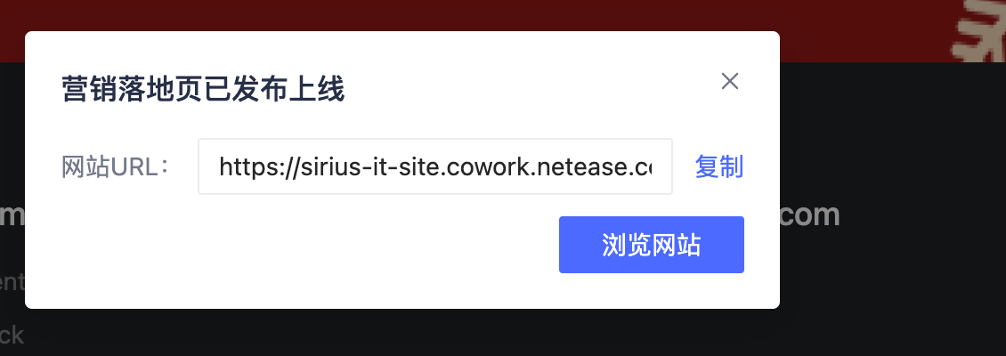 点击发布后可以对已编辑完成的营销落地页进行发布并浏览网站。