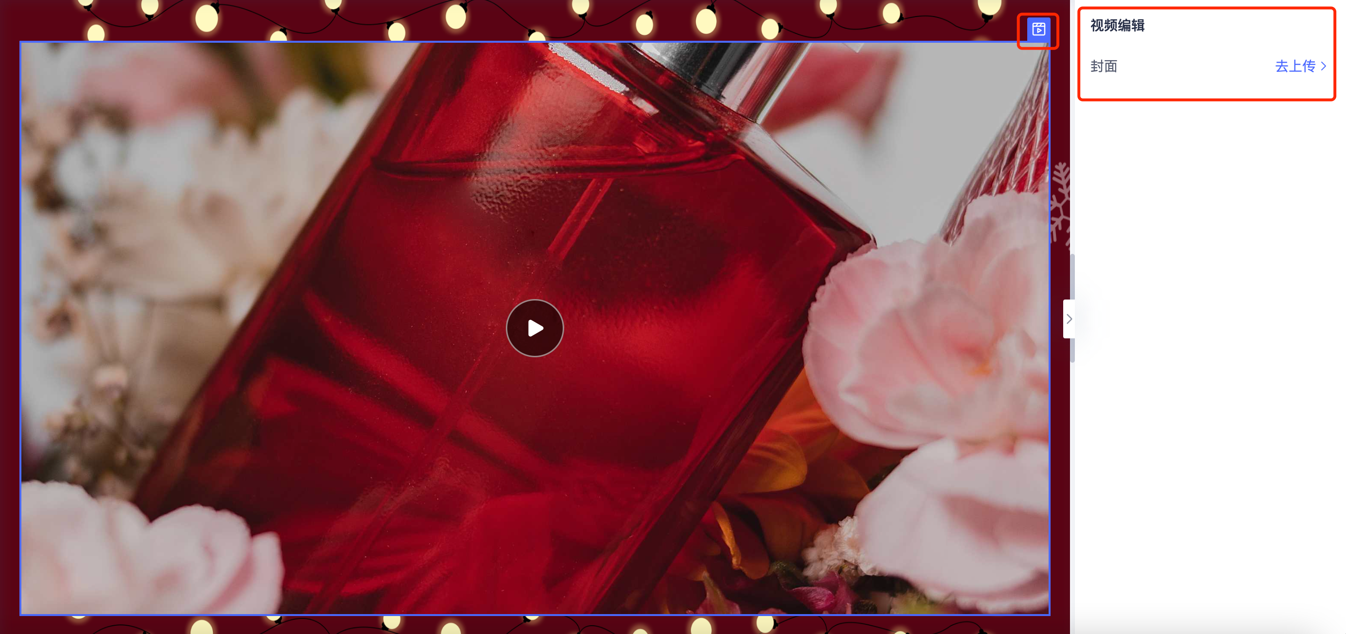 - 单击视频栏时,可以进行视频上传,在右侧元素编辑栏可以进行视频编辑: