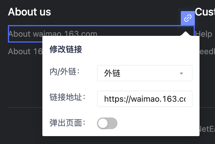 单击正文文本时,可以进行修改链接&在右侧元素编辑栏可以进行子级编辑&样式编辑:
