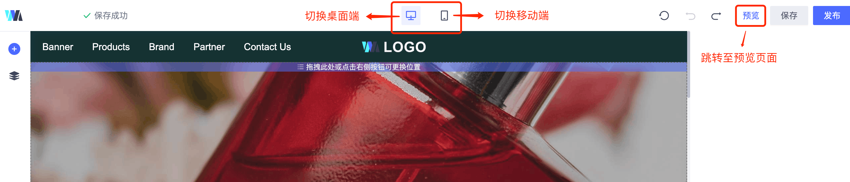 点击「预览」跳转新窗口页面预览当前编辑页面