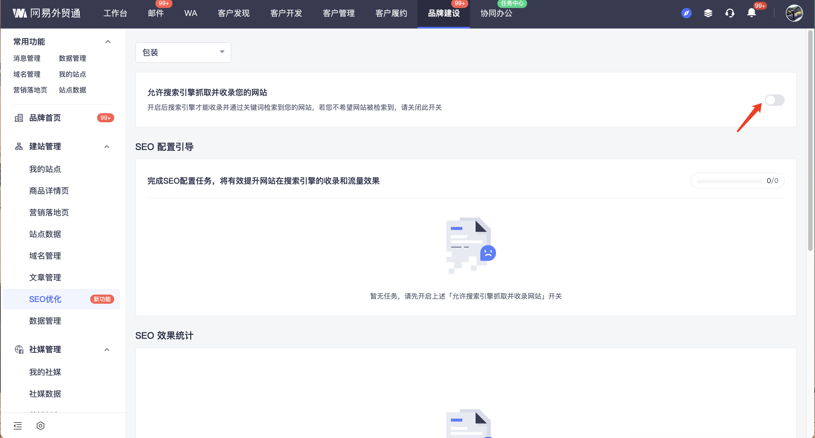 如果您的网站不希望被搜索引擎收录抓取,请关闭该开关