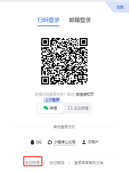 邮箱账号和密码需要联系客户索要,支持多种方式登录,若客户忘记对应账号,可以点击忘记账号名,提供线索让客户自己找回一下