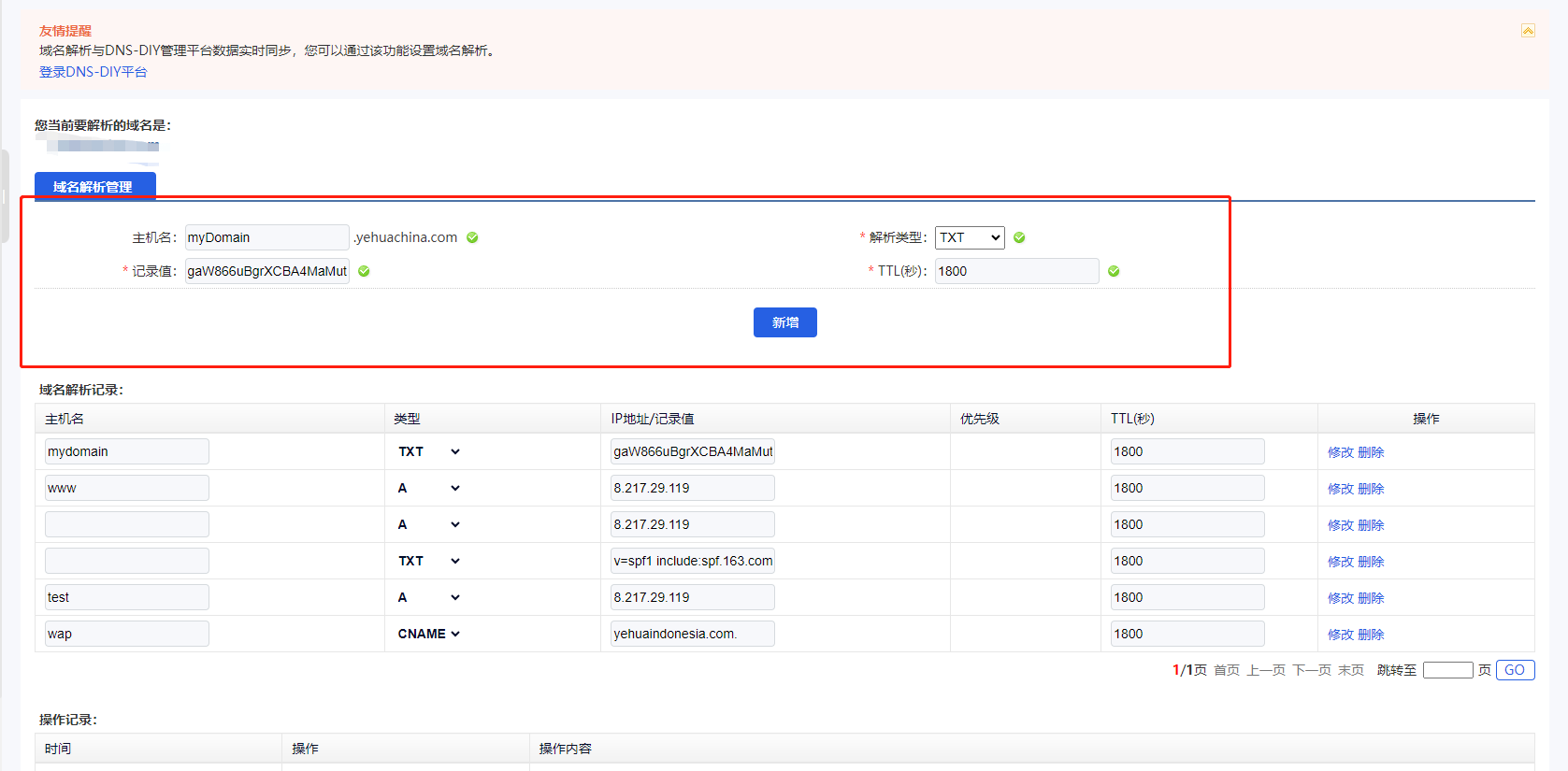 5.添加完解析后基本都是一分钟内生效